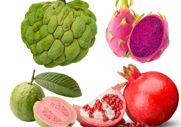 We supply custard apples, guavas, pomegranates, grapes, mangoes, and oranges in large quantities.